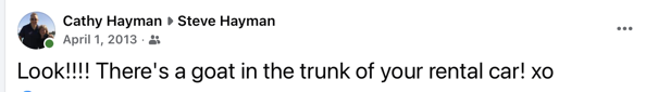 Ever since my kids were born, I have attempted, each April 1, to persuade them that there’s a goat in the backyard.